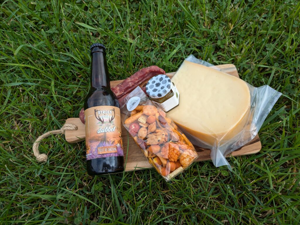 Pakketje klein: kaas, nootjes en stroe’s biertje €16,95